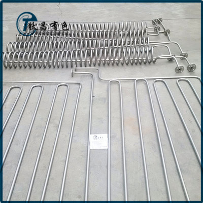 鈦盤管常用來作為容器內(nèi)部加熱和冷卻。盤管的固定方式有不可拆與可拆兩種,這要根據(jù)物料的情節(jié)程度及服飾情況決定,但在設(shè)計(jì)上盡可能用可拆式,以便于鈦盤管的清潔與檢修。